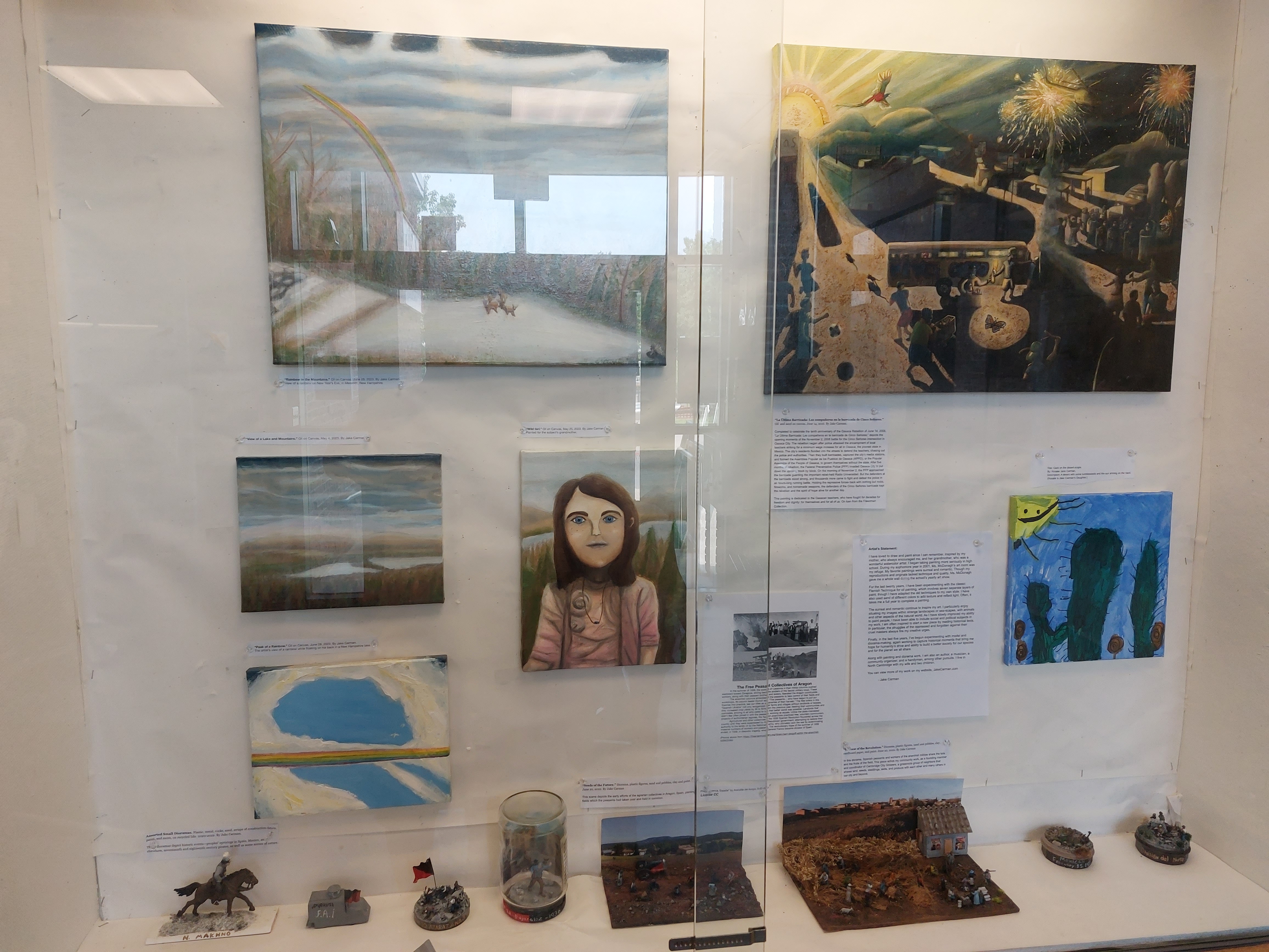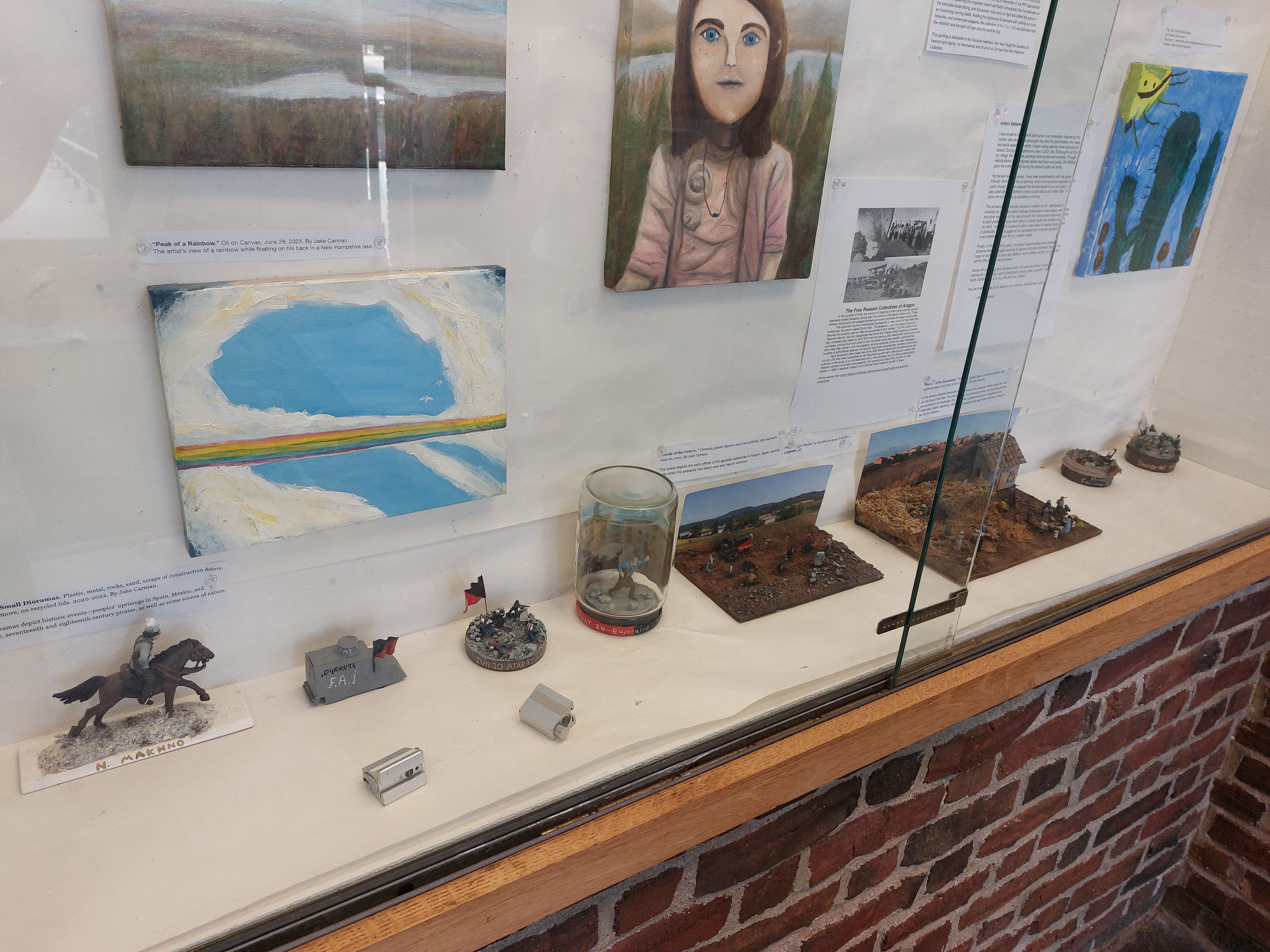 Last year, I booked the local library’s gallery space for this month, for my first art show since high school. This July, I planned to show my art, including a new painting and a large historic diorama. Not to let COVID stop us…I present a virtual art gallery. Please click the link below! If you are using a mobile phone, view it in “Desktop mode” or it won’t work (you won’t be able to click to see art or move around the space).